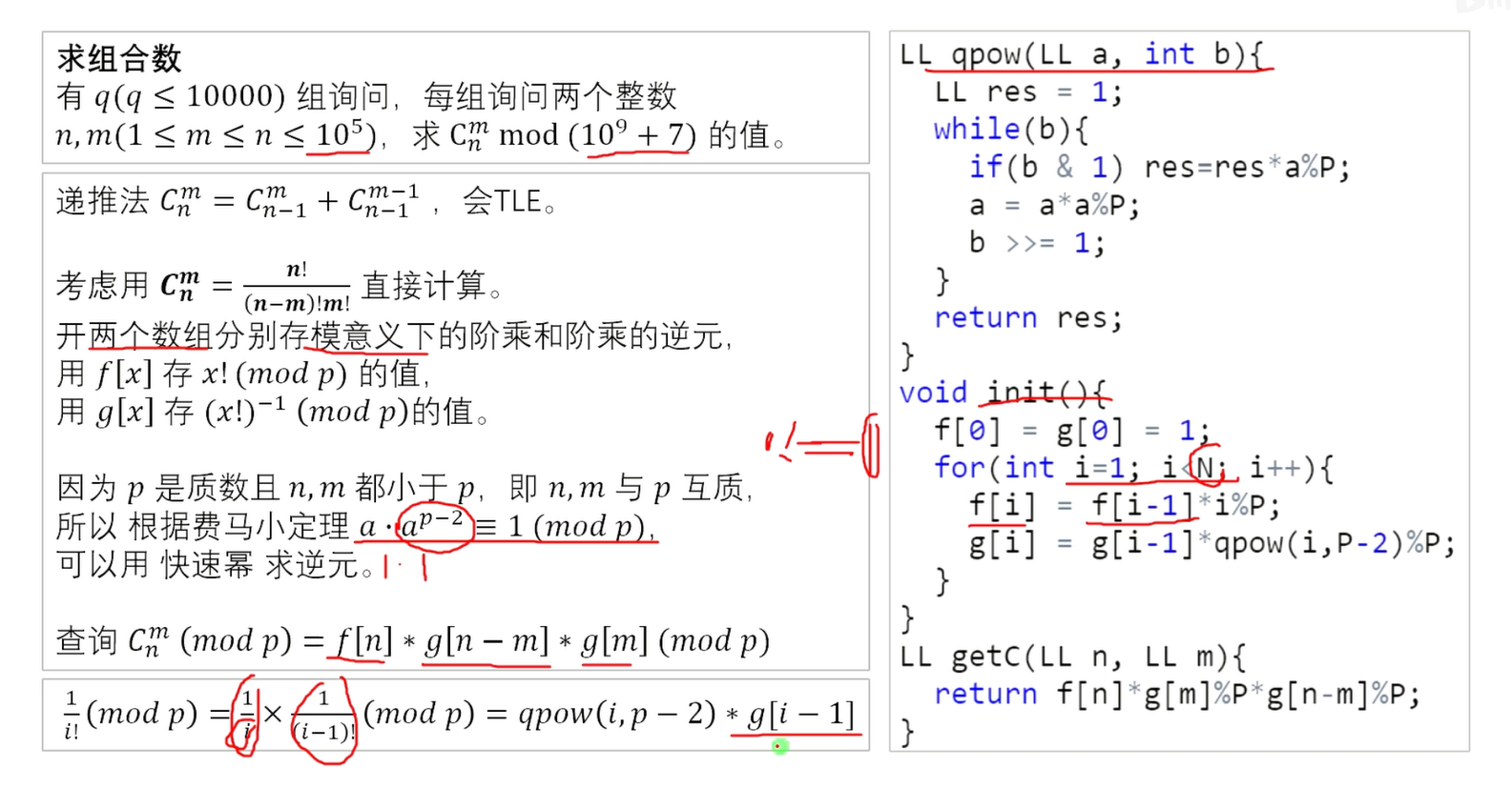 方法2---快速幂,求乘法逆元