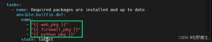 注:(1)建议为变量使用引号,以防止 Ansible 将变量视为 YMAL 字典的开头;