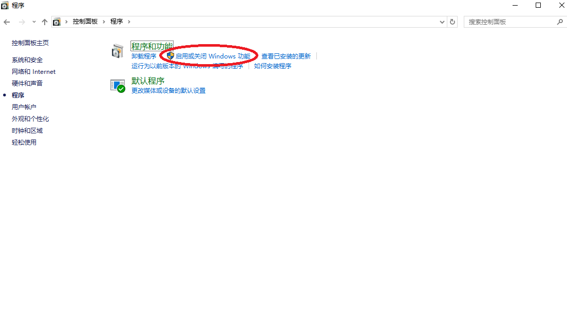 点击<<启用或关闭Windows功能>>选项