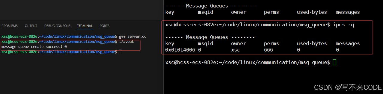 我们可以使用ipcs -q来查看操作系统当中的所有消息队列: