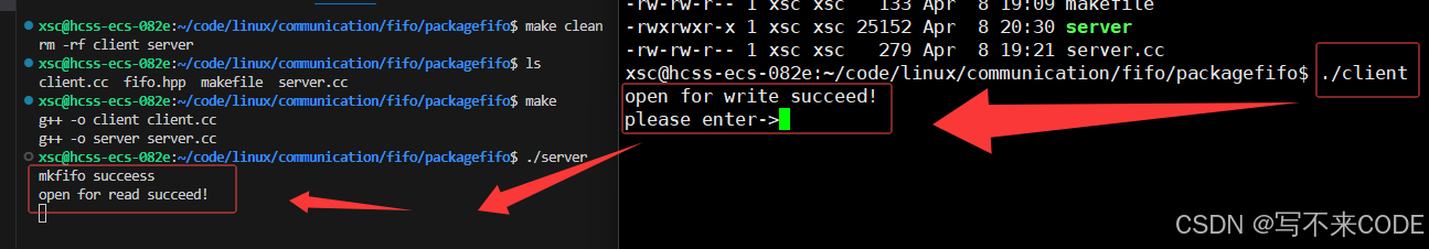 有了命名管道,我们就可以让不相关的进程之间进行通信。而前提是我们得打开管道文件。在命令行,我们可以通过mkfifo命令创建一个管道文件