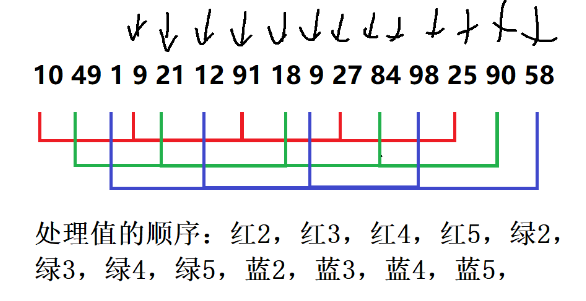 //每一趟单独执行希尔排序(需要告诉我们这一趟按哪个增量处理)