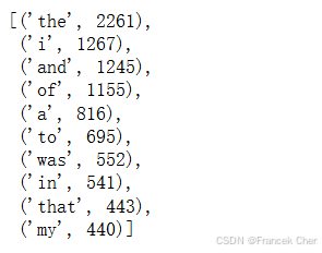 我们看看在真实数据上如果进行自然语言统计。根据文本预处理中介绍的时光机器数据集构建词表,并打印前 10 10 10个最常用的(频率最高的)单词。