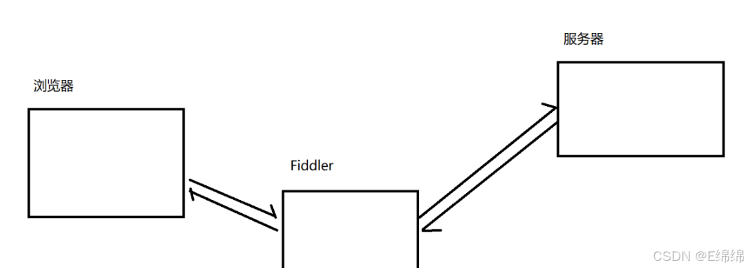 浏览器访问 csdn.com 时, 会把 HTTP 请求先发给 Fiddler, Fiddler 再把请求转发给 csdn 的服务器.当 csdn 服务器返回数据时, Fiddler 拿到返回数据, 再把数据交给浏览器.