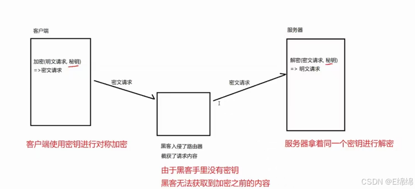 但是如果直接把密钥明文传输, 那么黑客也就能获得密钥了,此时后续的加密操作就形同虚设了。