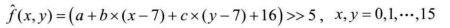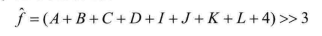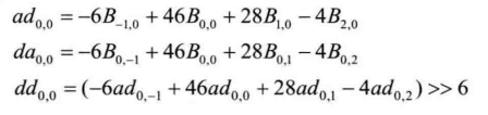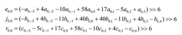 下面参照图4.25中的模板详细说明亚像素插值的过程,主要可分为两个步骤: