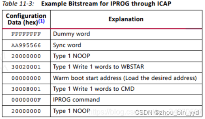 3,第二种方式用原语ICAPE2给跳转指令,不像我们上面列的那种给某个寄存器写跳转地址然后拉reset,ICAPE2接收的是带帧头帧尾的IPROG指令码流.