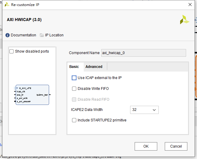 6,把ICAP封装成axi接口开放给microblaze配置的ip是axi_hwicap