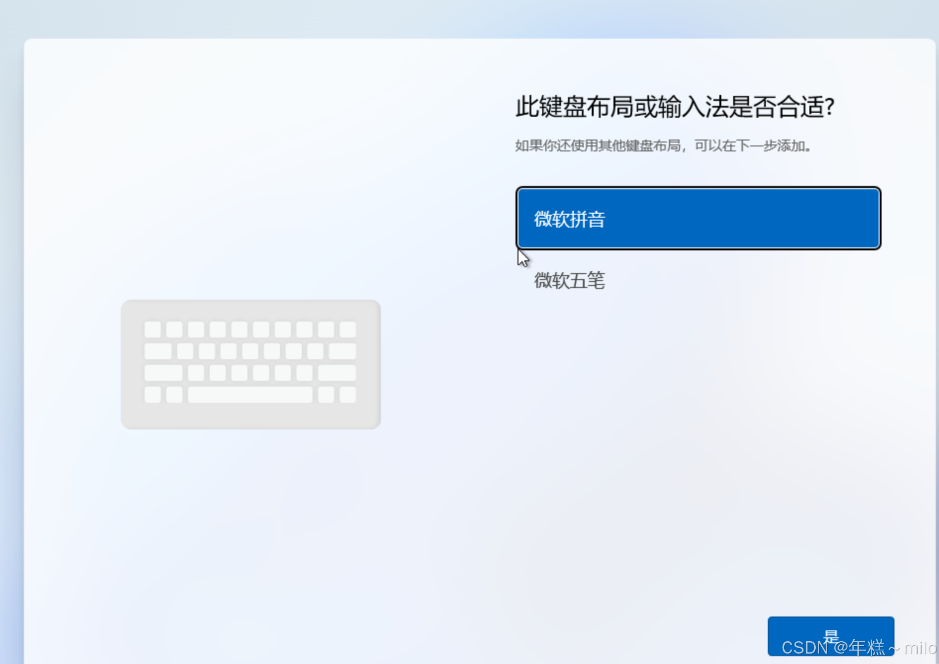 重新选择 国家、键盘、第二种键盘布局