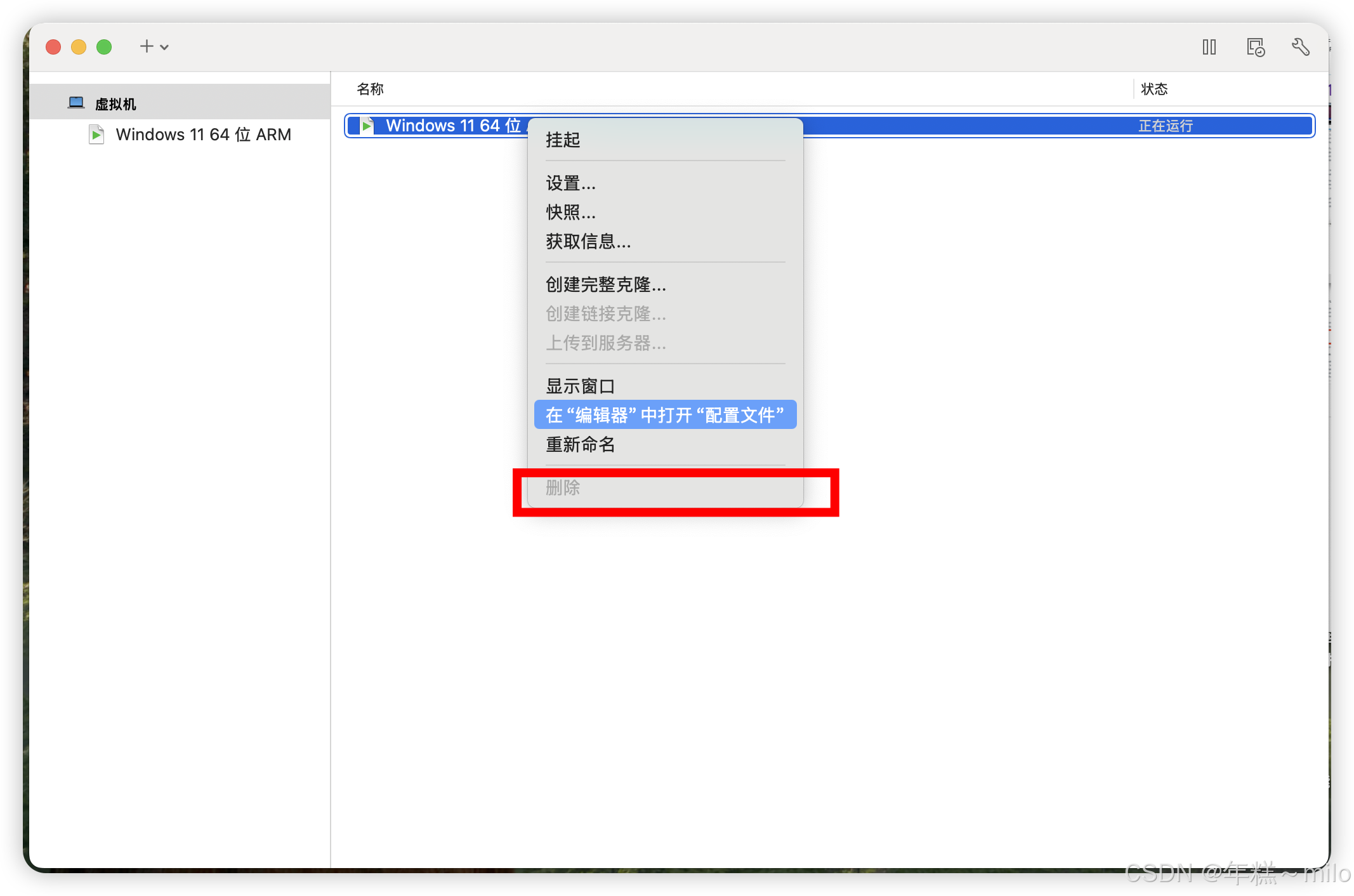 - 右击控制台图标--选择虚拟机资源库,显示虚拟机列表---右击选择删除(删除按钮需要在虚拟机服务停止时进行删除)