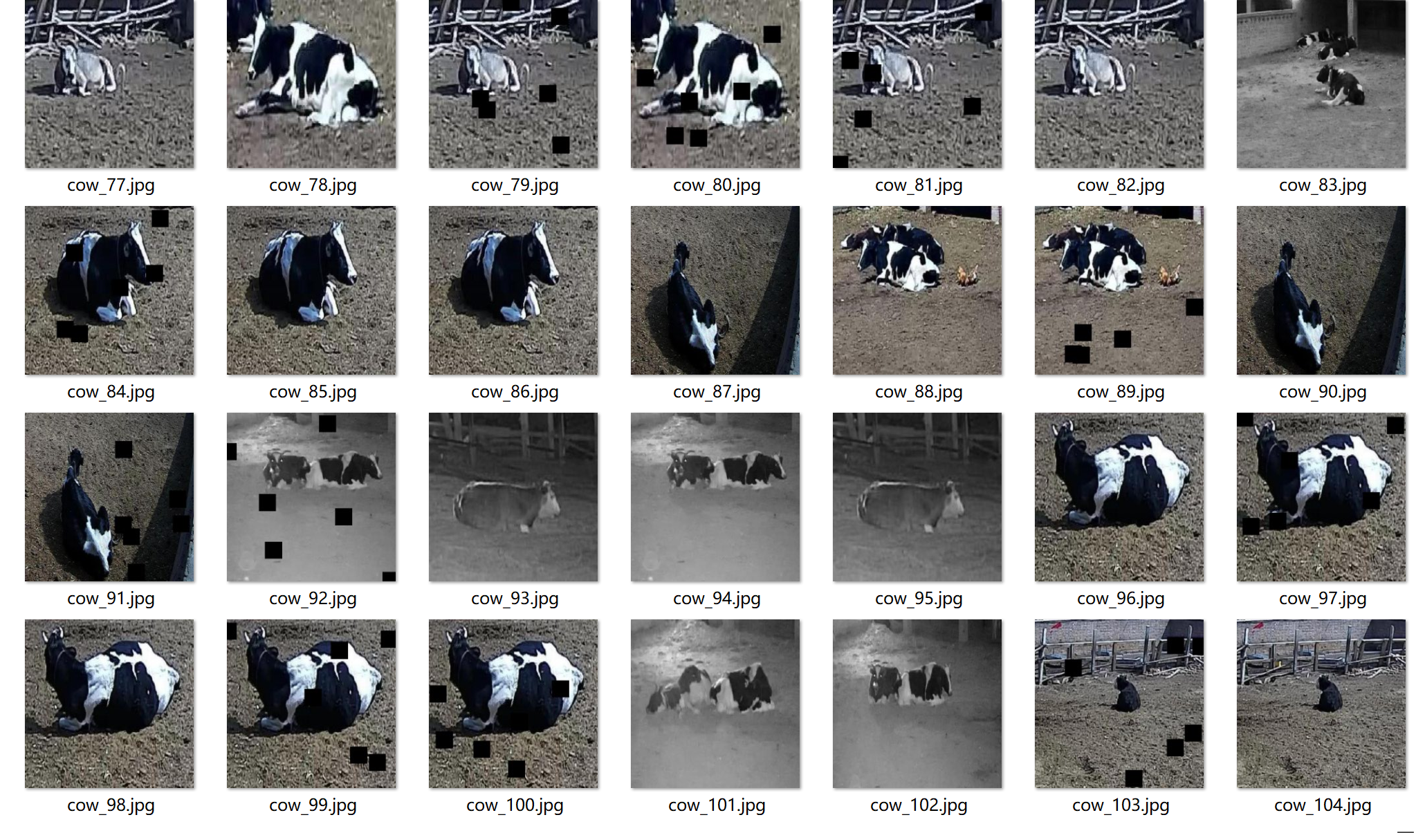 - 随机水平翻转:模拟不同视角下牛的行为变化