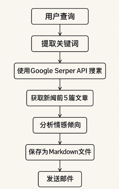 - 本项目旨在构建一个本地智能舆情分析系统,通过自然语言处理与多工具协作,实现用户查询意图的自动理解、新闻检获取新闻索、情绪分析、结构化输出与邮件推送。