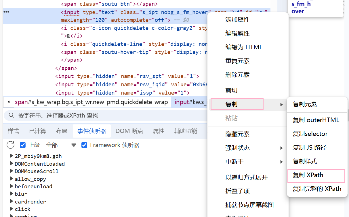 我们可以看到,一个百度的输入框,可以用这么多种方式去定位。