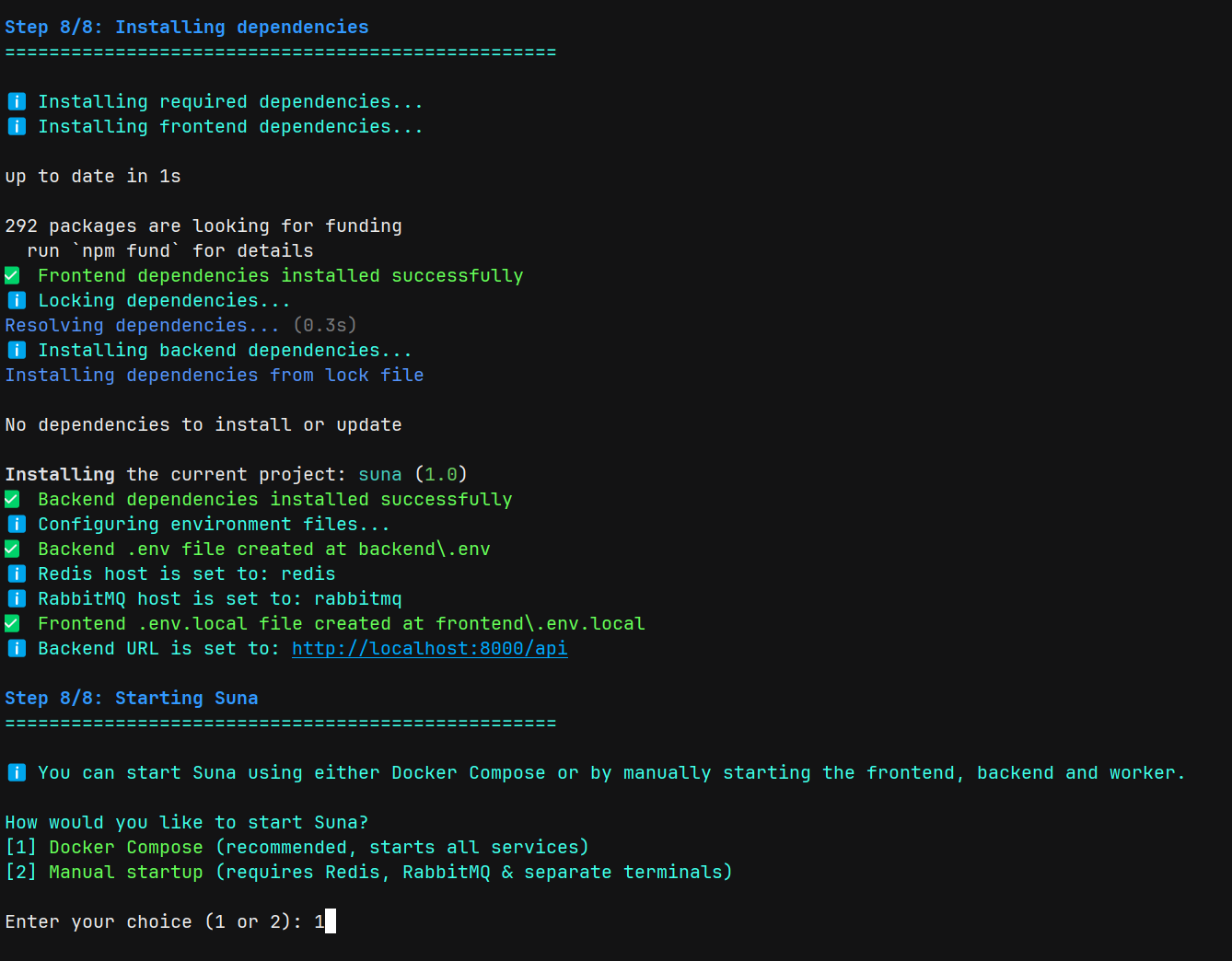 (九)Step 8/8:Installing dependencies & Starting Suna