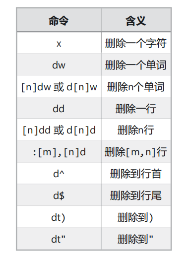 行尾。而且我们还可以指定命令重复的次数:“dd” 表示删除光标所在行,“2dd” 或