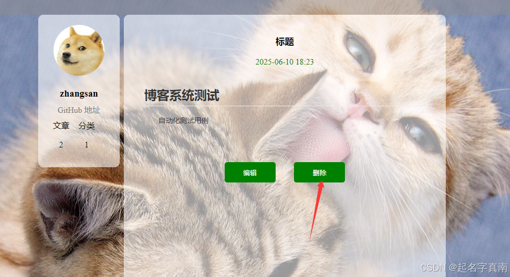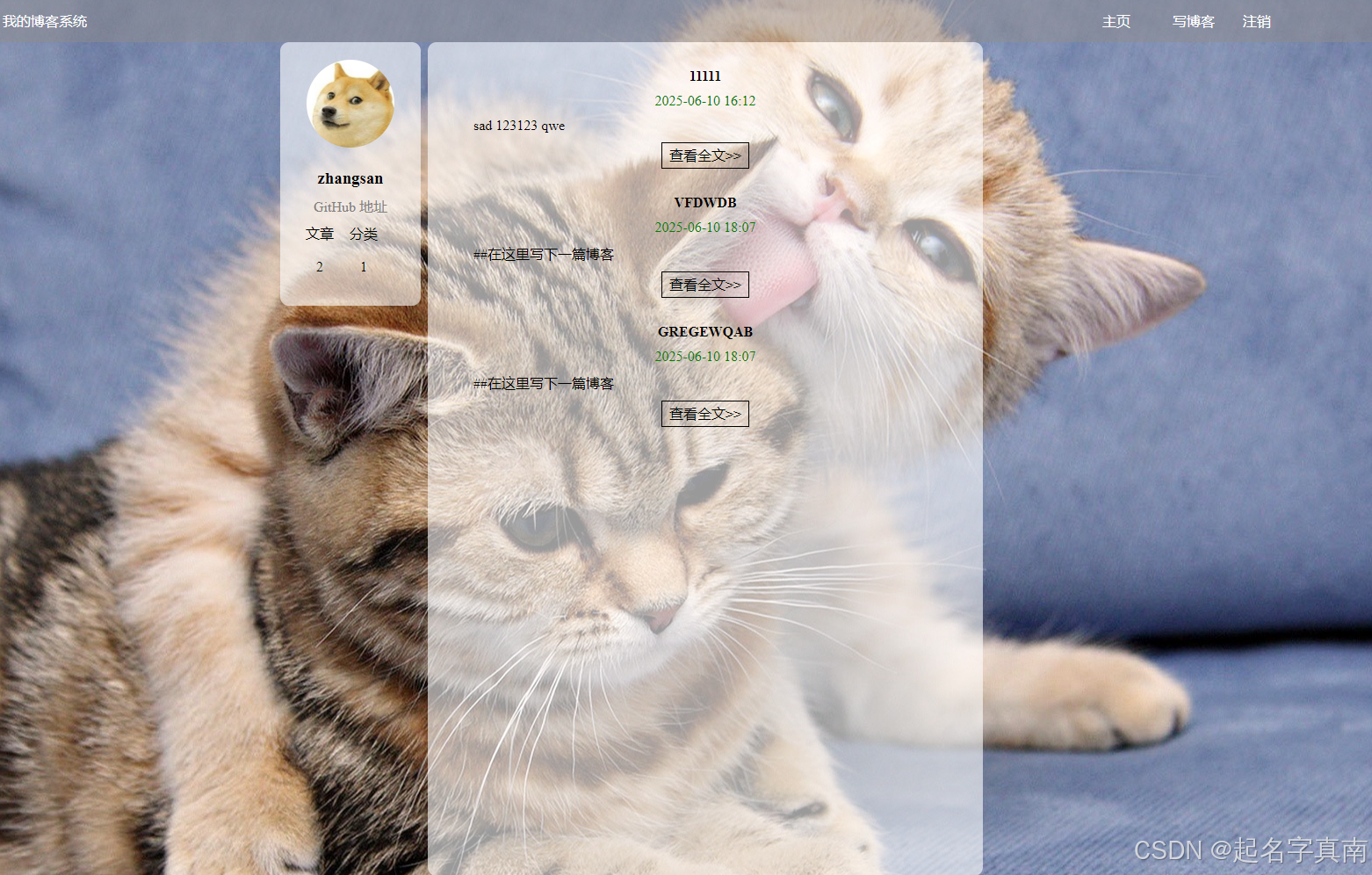 从图中我们可以看到用户的头像,文章数量,用户名,GitHub地址