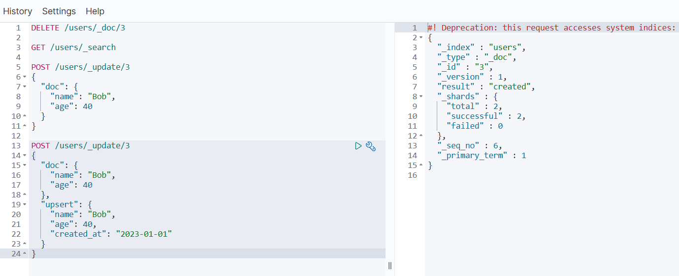 | 存在则更新,否则插入 | 避免重复插入 | POST /index/_update/{id} + upsert |