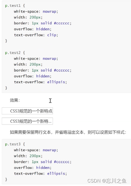 3.css3文本溢出属性指定应向用户如何显示移除的内容: