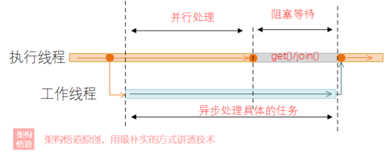 基于异步编程实现的并行操作也是借助线程池的方式,通过多线程同时执行来实现效率提升的。与并发的区别在于:并行通过将任务切分为一个个可独立处理的小任务块,然后基于系统 调度策略 ,将需要执行的任务块分配给空闲可用 工作线程 去处理,如果出现需要等待的场景(比如IO请求)则工作线程会将此任务先放下,继续处理后续的任务,等之前的任务IO请求好了之后,系统重新分配可用的工作线程来处理。