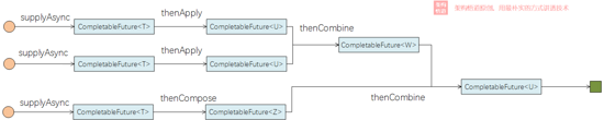 - themCombineAsync三个入参的方法,支持自定义线程池并指定使用自定义线程池中的线程作为工作线程去处理待执行任务。