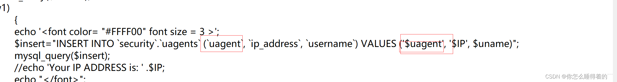 注意多一个括号是闭合源码里面的括号,后面and'是填补$ip和$uname的值