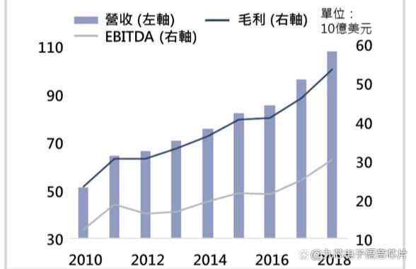 随着IC技术进步,人们更加依赖各种连接装置与物联网(IOT)应用,使半导体IC芯片成为数字化趋势下的关键支柱,让位居最上游的全球IC设计公司长期维持稳健的收入和利润(下图);也为半导体设备制造商创造有利的经营环境,整体前景持续看好。