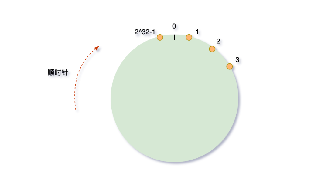 我们可以将这2^32个值抽象成一个圆环⭕️(不得意圆的,自己想个形状,好理解就行),圆环的正上方的点代表0,顺时针排列,以此类推,1、2、3、4、5、6……直到2^32-1,而这个由2的32次方个点组成的圆环统称为hash环。