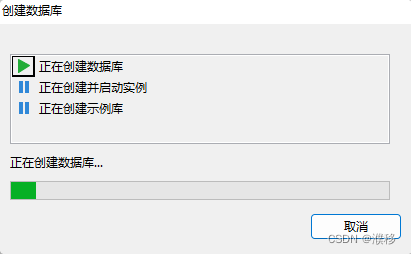 11.开始创建数据库实例并显示进度,完成之后点击完成”即可。