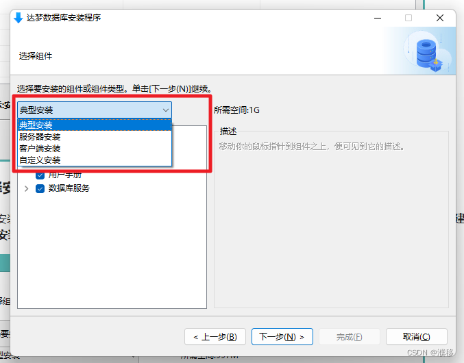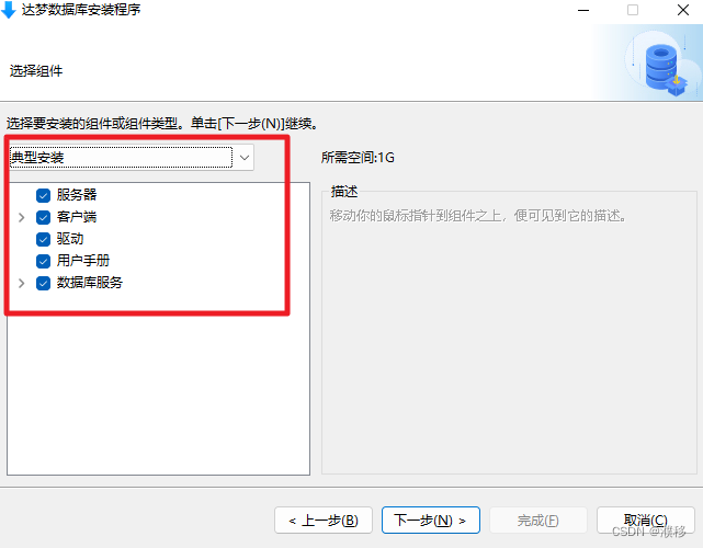 典型安装包括:服务器、客户端、驱动、用户手册、数据库服务。