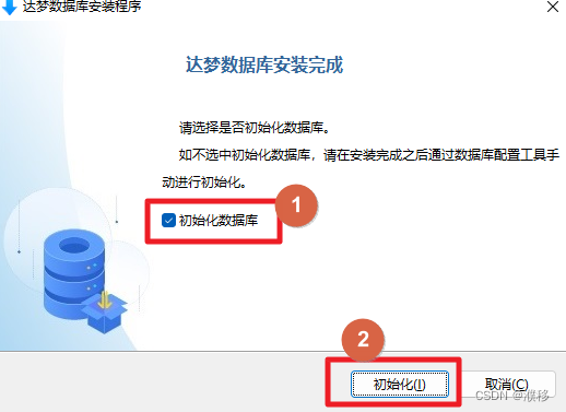 1.在安装完成之后,会提示是否初始化数据库,如果需要对数据库进行初始化,勾选“初始化数据库”,点击“初始化”。