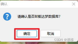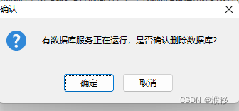如有数据库正在运行,会提示“有数据库正在运行,是否确认删除数据库”,点击“确定”即可。