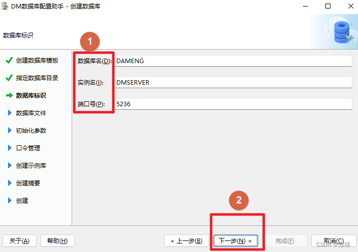 5.输入数据库名,实例名和端口号,点击下一步。