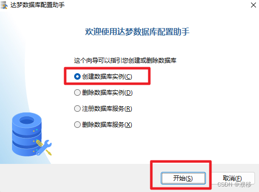 2.此处建议选择【创建数据库实例】,点击“开始”进入下一步