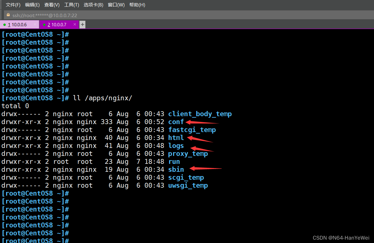 [root@centos8 ~]# mkdir /apps/nginx/conf/conf.d