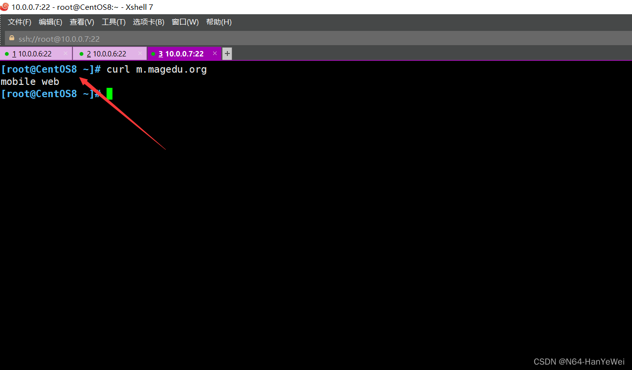 [root@centos8 ~]# echo "mobile web" >> /data/nginx/html/mobile/index.html