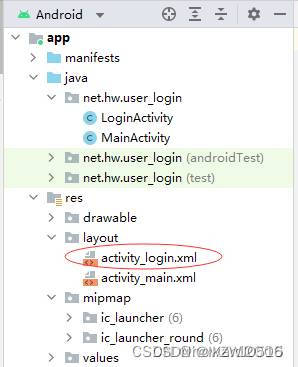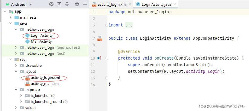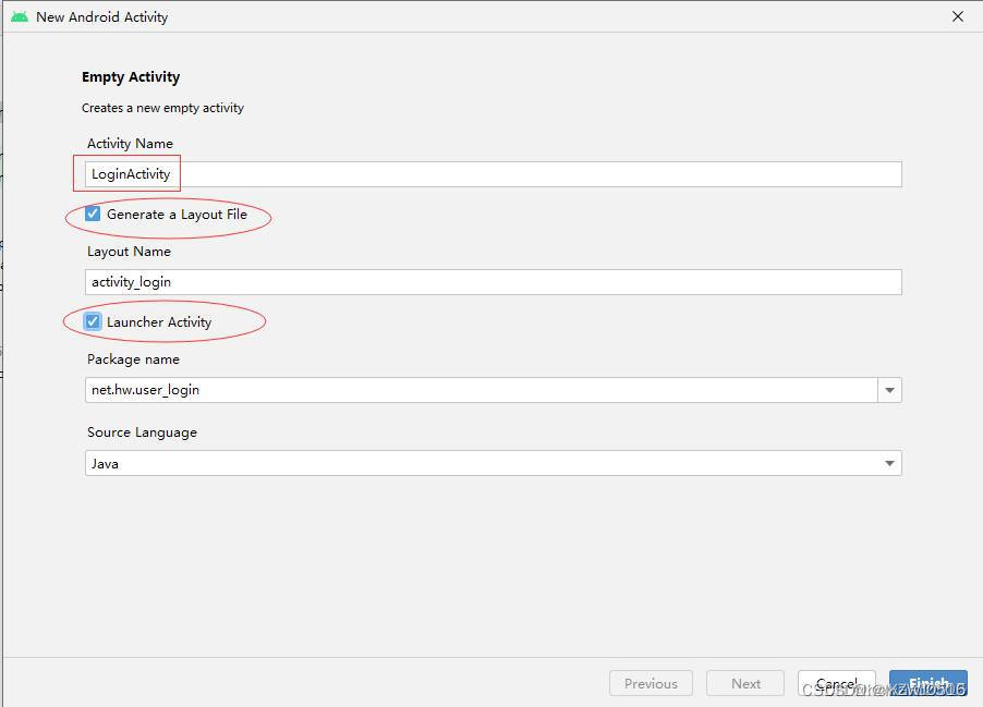 基于Empty Activity模板创建LoginActivity,要生成对应的布局文件,并且要设置为启动Activity