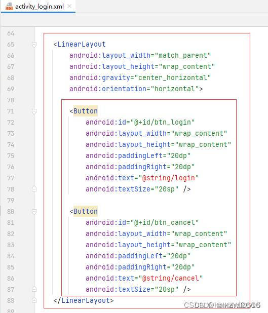 添加登录按钮和取消按钮,但是需要一个是水平方向的线性布局把它们框起来