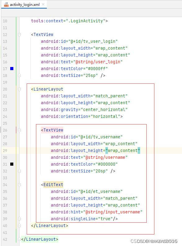 添加输入用户名的标签和编辑框,但是需要一个水平方向的线性布局把它们框起来