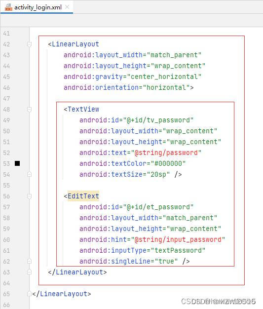 添加输入密码的标签和编辑框,但是需要一个水平方向的线性布局把它们框起来