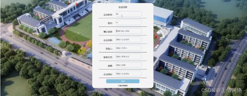 企业注册,企业通过输入企业账号、密码、企业名称、负责人、联系方式、邮箱、企业地址进行注册,如图5-5所示。