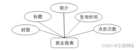 就业指南实体包括封面、标题、简介、发布时间、点击次数等属性;就业指南实体图如图4-4所示: