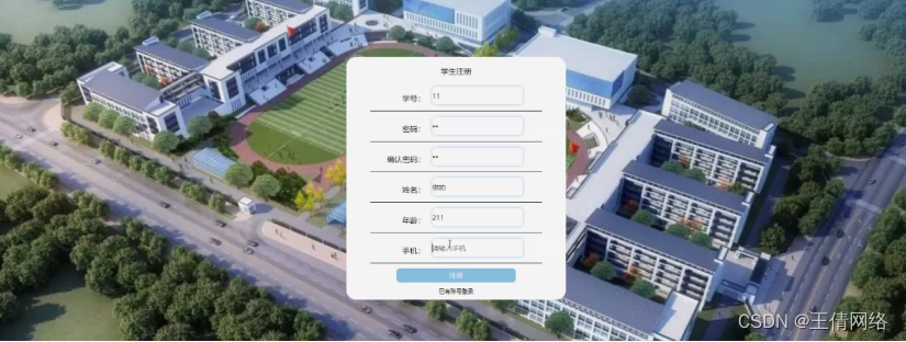 学生注册,学生通过输入学号、密码、姓名、年龄、手机进行注册,如图5-4所示。