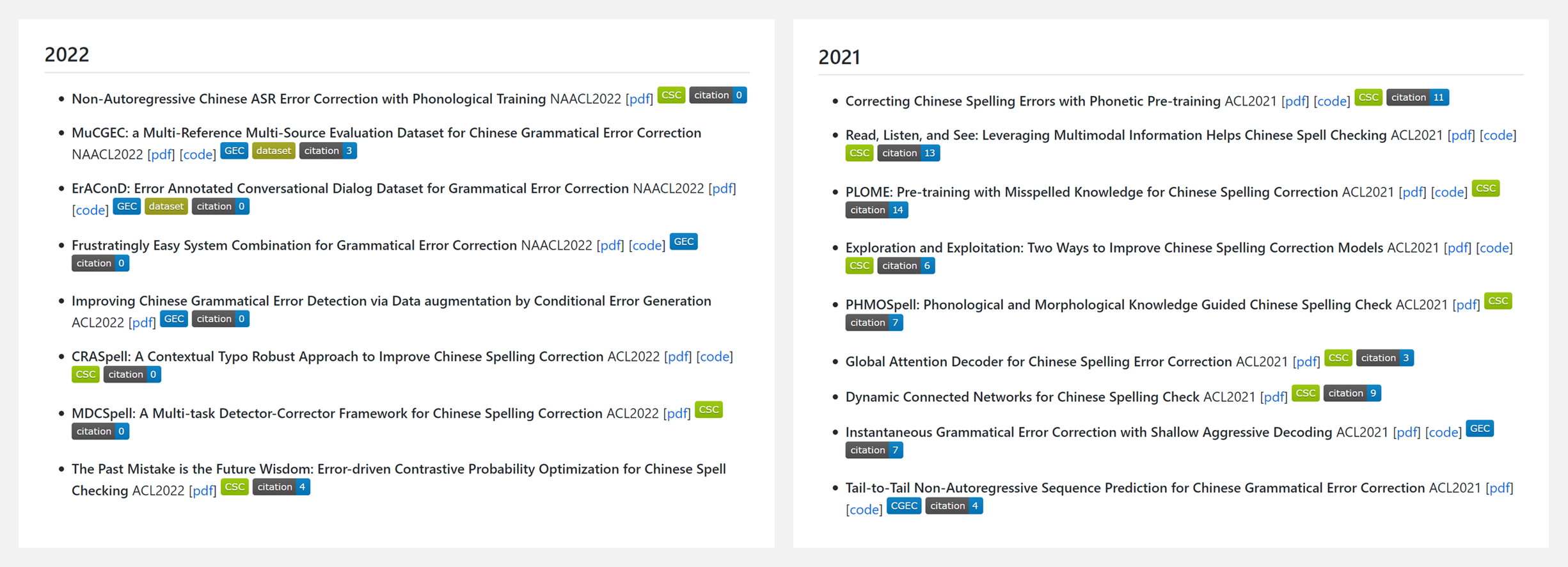 该 repo 旨在持续跟踪文本校正方面的相关工作,包括中文拼写检查 (CSC) 和语法错误校正 (GEC)。