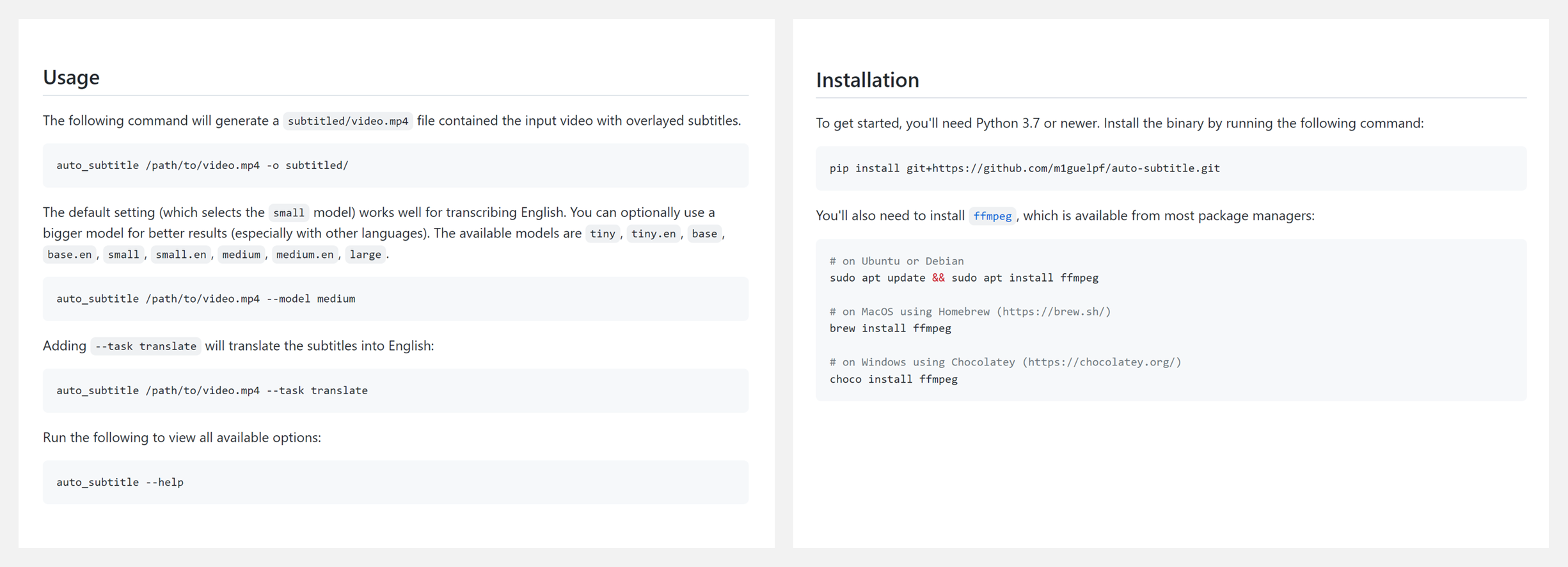这个项目把 ffmpeg 和 OpenAI 的 Whisper 组合成一个工具,用来自动生成任何视频的字幕。