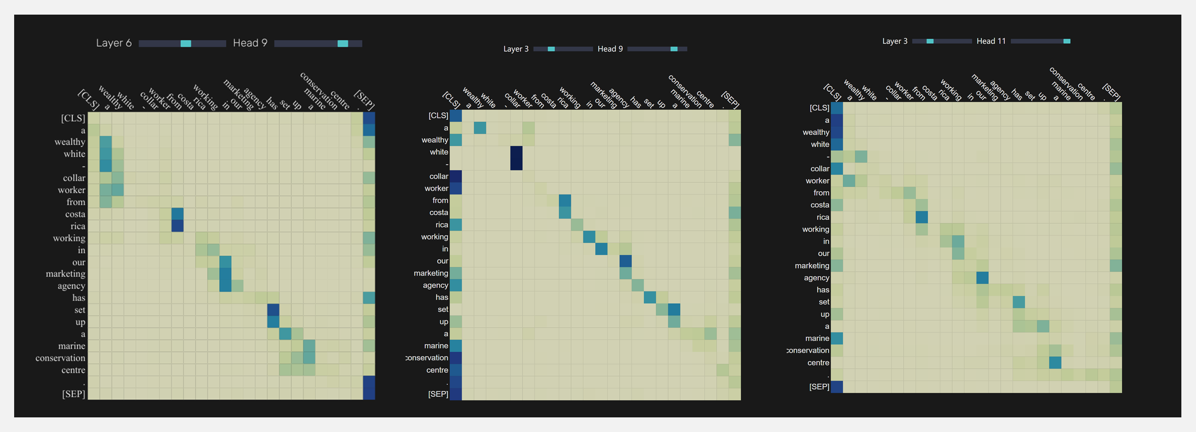 原始论文『Attention Is All You Need』证明了注意力机制在 Transformer 模型中的核心地位。基于 Transformer 的模型在计算注意力机制的过程中产生了注意力矩阵,显示模型是如何处理输入数据的,也被看视作机制的具体表现。TrAVis 工具库则可以将注意力矩阵进行可视化,并支持在浏览器中完成之一过程。