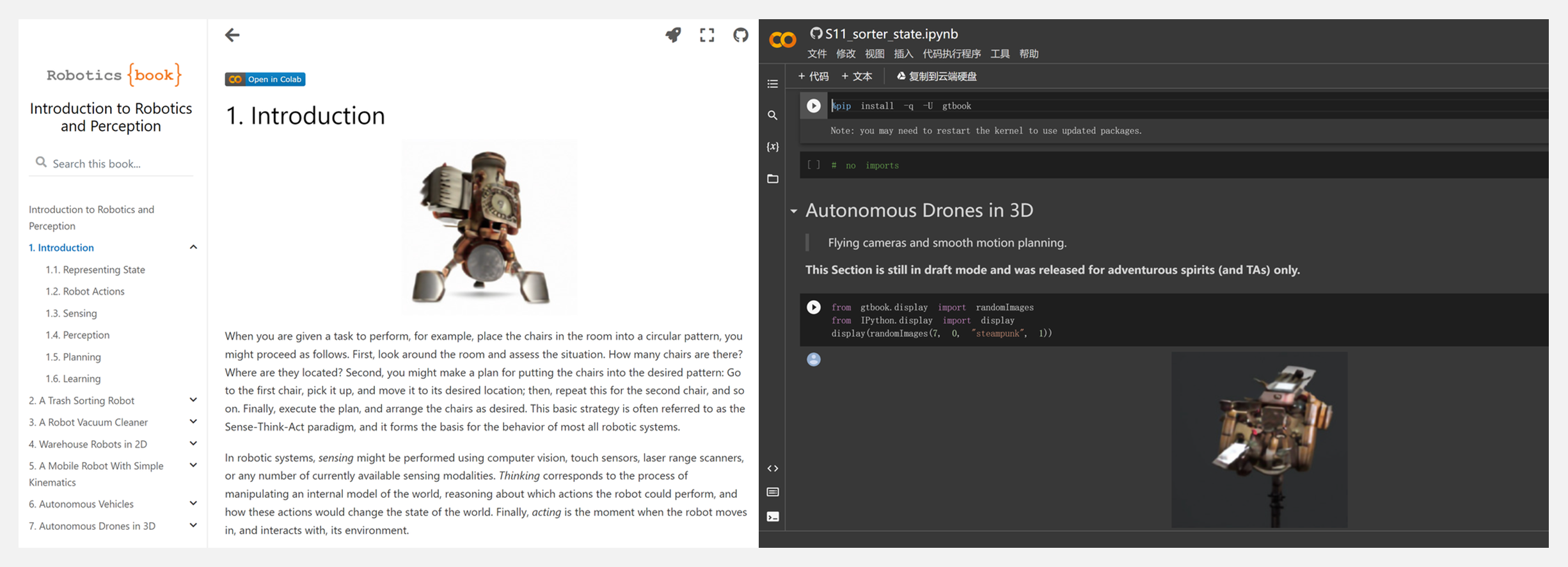 这是关于介绍机器人技术的书稿,完全使用 Notebook 编写,用于2022年佐治亚理工学院CS3630秋季课程。书稿包含以下主题: