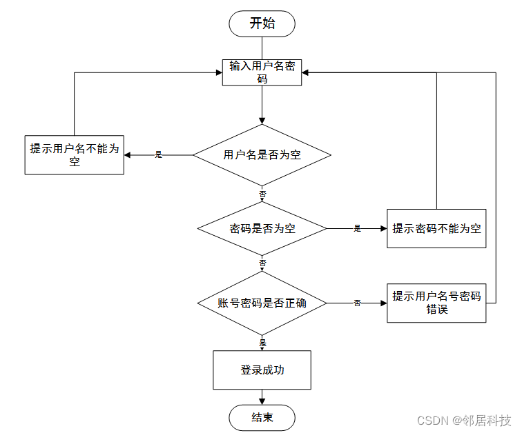 运行流程主要为输入用户名密码,并且不能为空,若为空则提示不能为空,用户名和密码全部输对即可登入成功,主要流程如图3-2。