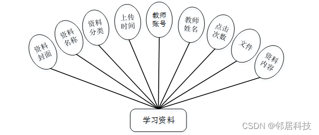学习资料,在学习资料页面可以查看资料封面、资料名称、资料分类、上传时间、教师账号、教师姓名、点击次数、文件、资料内容等详细内容,并进行评论或收藏操作,如图5-3所示。